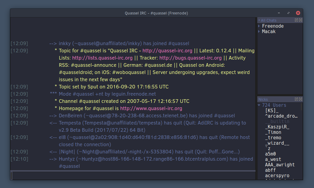 Dracula.qssfile in your~/.config/quassel-irc.orgfolder - Select and apply this theme via Interface Settings